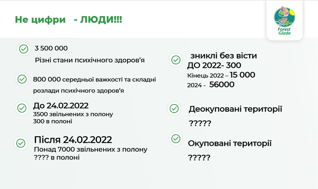 - Люди з окупованих/деокупованих територій мають комплексні травми: втрата житла, досвід насильства, катування, загибель родичів.
